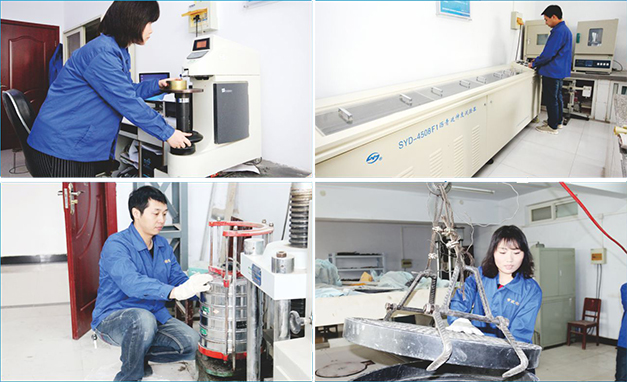 瀝青室主要試驗項目包括:粗細(xì)集料、礦粉、道路石油瀝青及改性瀝青、乳化瀝青、稀漿封層和微表處、瀝青混合材料配合比、穩(wěn)定度、流值、密度、飽水率、瀝青含量、礦料級配、芯樣馬歇爾、空隙率、飽和度、殘留穩(wěn)定度、動穩(wěn)定度、謝倫堡瀝青析漏、肯塔堡飛散、凍融劈裂實驗等。