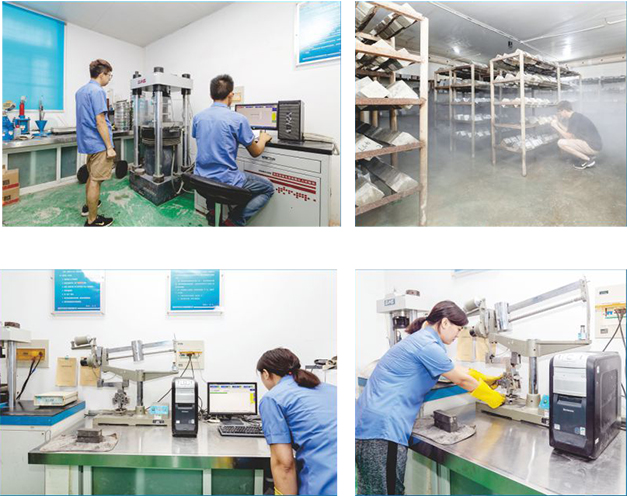 混凝土室主要試驗項目包括:砂石、水泥、粉煤灰、混凝土外加劑、混凝土配合比、拌合物坍落度、拌合物維勃稠度、拌合物泌水性、拌合物含氧量、抗折強度、立方體抗壓強度、軸心抗壓強度、劈裂抗壓強度、靜力受壓彈性模量、抗?jié)B性能、抗凍性能、收縮性能、砂漿配合比、立方體抗壓強度、拌合物稠度、抗?jié)B、磚和砌塊抗壓強度、抗折強度、抗凍性、吸水率、含水率、密度、劈裂抗拉強度、防滑性能、透水系數(shù)、耐磨性能,路用檢查井蓋、水算、巖石等。